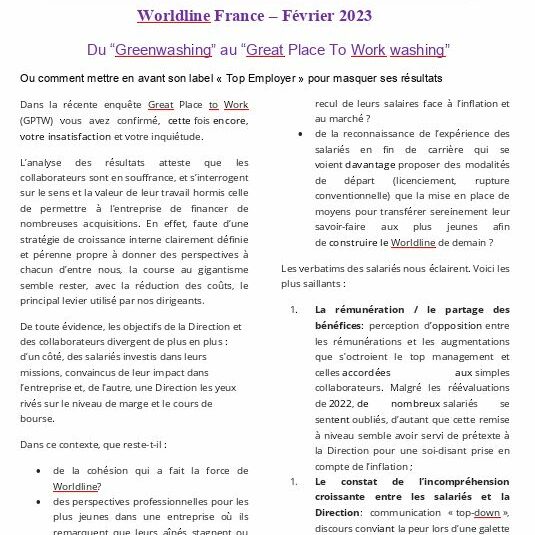 Fév242023 Du “Greenwashing” au “Great Place To Work washing” Du “Greenwashing” au “Great Place To Work washing” Ou comment mettre en avant son label « Top Employer » pour masquer ses résultats