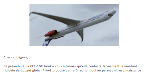 La CFE-CGC dénonce le faible budget AI/AG proposé par la Direction, jugé insuffisant pour réengager les salariés.