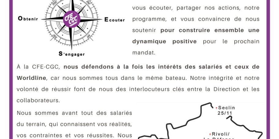À l’approche des élections professionnelles, vos élus CFE-CGC viennent à votre rencontre.